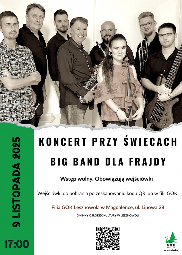 Wstęp wolny. Obowiązują wejściówki. Wejściówki do pobrania po zeskanowaniu kodu QR lub w filii GOK.